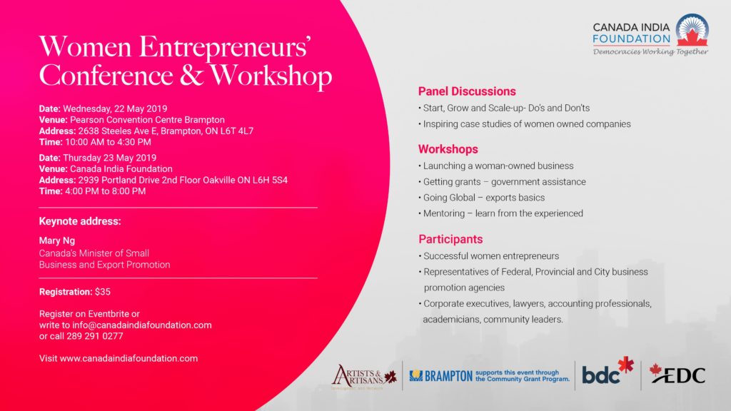 CIF Women Entrepreneurs’ Conference will create a friendly, non-judgmental platform for women entrepreneurs, both established and starting, to understand the ecosystem of women enterprise and avail of the opportunities available through official agencies and through the shared experiences. The purpose of the conference is to provide guidance to businesses owned and operated by visible minority women to benefit from the path-breaking policy announcements of the federal government to promote enterprise by women. The conference will be a two-day event; it will be for all women entrepreneurs with special focus on minority-owned businesses.